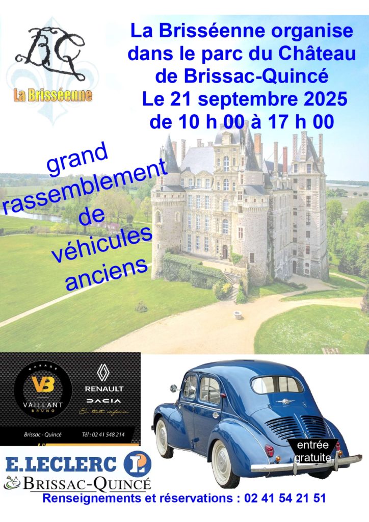 L’association « La Brisséeenne » organise un rassemblement de véhicules anciens le dimanche 21 septembre 2025 dans le parc du château de Brissac.
